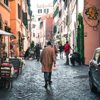 The rest of the Afternoon was spent kicking back with a Gelato wandering the back lanes before finding a very under assuming small Craft beer bar. The walls were grubby and laden with graffiti tags, two rickety tables and umbrellas sat outside, one table marked clearly with a strip of dirty masking tape and the words “Locals Only”. Then I notice a pair of fellas in Carhart sweaters, half of them inside and hanging half out the door smoking a rollie… they were just about ticking the box of not smoking indoors. They looked cool, I gave them the downward nod, the one a bloke does passing another bloke that they don’t know… we save the upward nod for people we know and intend on stopping to chat to. Then I noticed the tiny sign that read “Tap List”. I was sold. Afternoon pint of a local hoppy IPA is exactly what I needed. Stuck my head in… ordered a beer. “Can I also get a coke for the little guy please?” I asked …. “We don’t do soft drinks but you can go to the mini market down the road” she replied. Classic… I walked out with a pint in hand…and just wandered down this small cobbled road with it to the mini market before returning with a can of coke, we sat at the guest table haha. We headed back to the hotel area, along the side of the Roman Forum , the late afternoon sun was low and warm, sneaking through the gaps between buildings lifting up the ruins with a orange/pink glow and creating long shadows on the roads as people crossed, perfect time for photos so we took our time and ended the evening in another local Pizzeria indulging ourselves in crispy cheesy goodness.